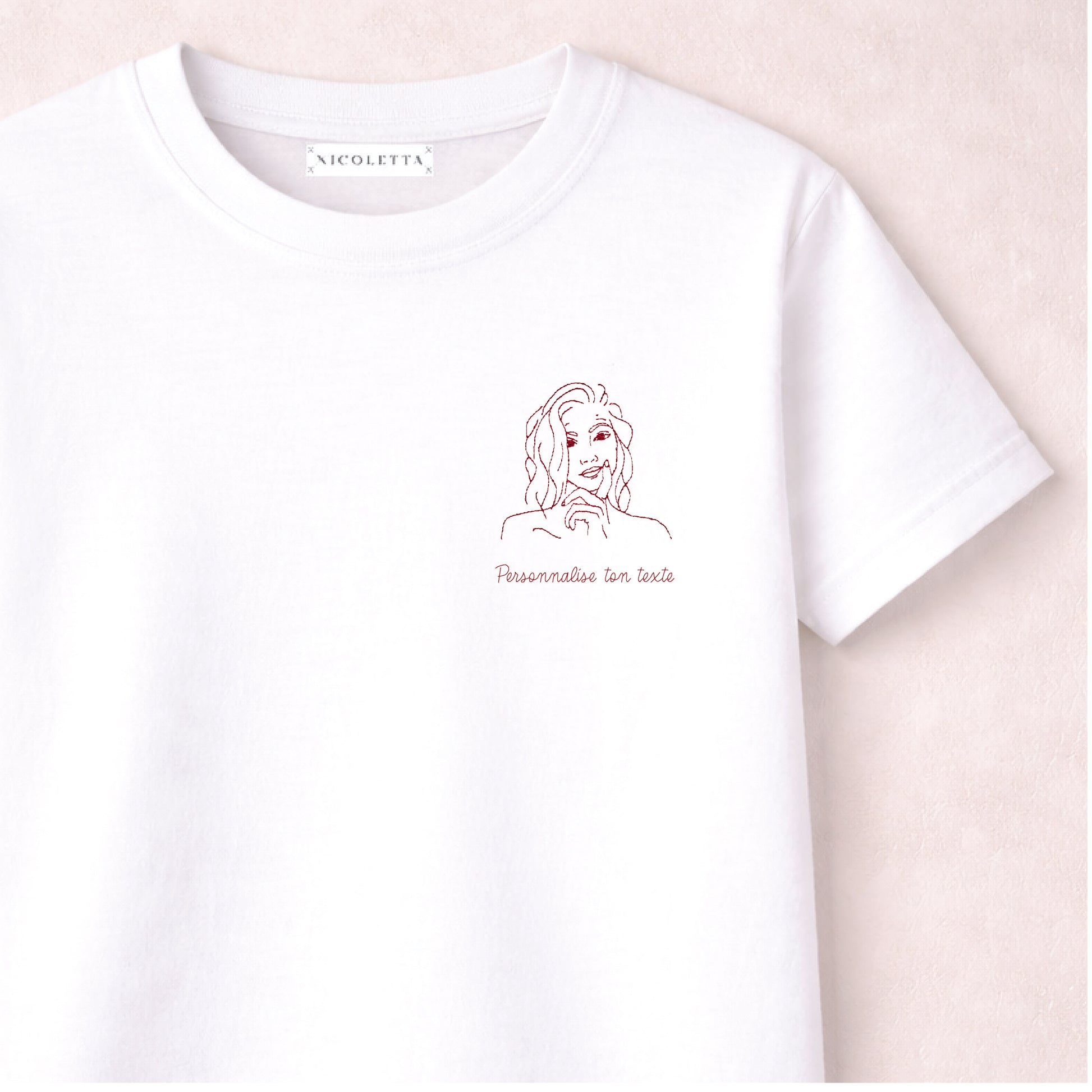 Personnalisez cette broderie si vous le souhaitez, puis choisissez la couleur et le support de votre choix.